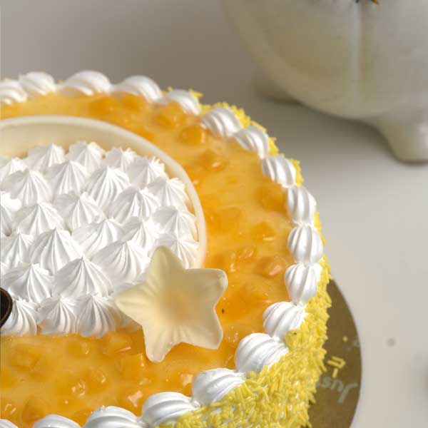 Alphonso Mango Cake from Just Bake is a tropical delight that captures the essence of the king of fruits in a beautifully crafted dessert. This exquisite cake features layers of moist, fluffy sponge cake infused with the luscious flavour of Alphonso mangoes, known for their rich sweetness and vibrant colour. Each layer is generously filled with a smooth, creamy mango frosting that enhances the cake's fruity taste, creating a perfect balance of sweetness and tanginess.Ideal for any celebration or simply as a treat for mango lovers, the Alphonso Mango Cake is a testament to Just Bake's commitment to quality and flavour.