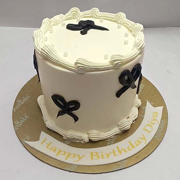 Indulge in the sophisticated charm of our Black Ribbon Elegance Birthday Cake from Just Bake. This stunning creation features rich, velvety layers of chocolate cake, meticulously frosted with smooth black velvet icing. Adorned with delicate black ribbon accents, it exudes a timeless elegance perfect for any celebration. Each slice offers a delightful fusion of flavor and luxury, making it an unforgettable centerpiece for birthdays and special occasions. Celebrate in style with this exquisite cake that’s sure to impress!
