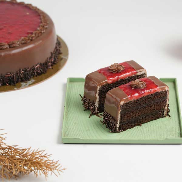 Savor the irresistible charm of Just Bake's Chocolate Raspberry Cake! A luscious fusion of rich chocolate layers and tangy raspberry filling, this cake is a celebration of flavors. Topped with velvety chocolate ganache and adorned with fresh raspberries, it’s perfect for any occasion. Every bite offers a delightful balance of sweetness and tartness, making it a treat to remember. Whether it’s a birthday or a special celebration, this exquisite creation promises to steal the show!
