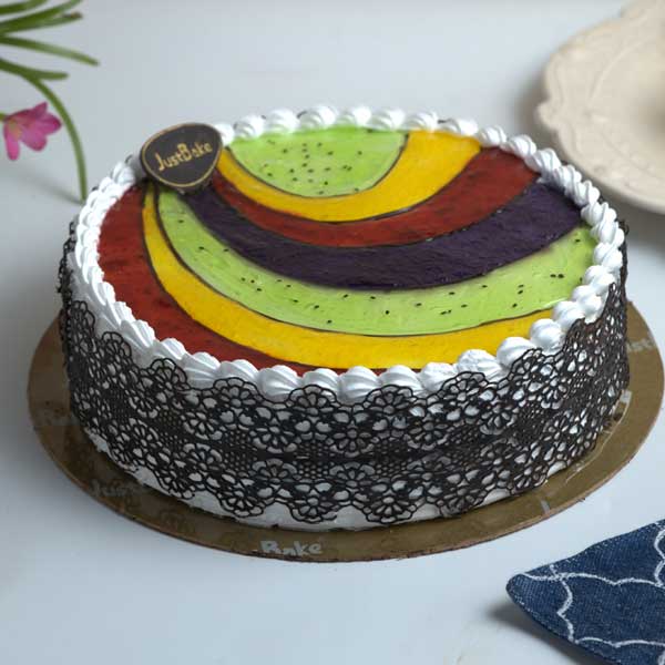 The fresh fruit cake was something different from the usual cakes that we order. The finally sliced fruits on the top of the cake give it a fresh look and it seems like a perfect cake for health conscious people. It was delivered on time even after the classic decoration.