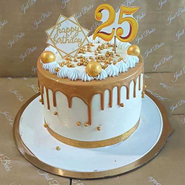 Indulge in the luxurious elegance of Just Bake's Golden Drip Cake, a stunning masterpiece perfect for any celebration. This exquisite cake features a smooth, velvety base topped with golden drips that shimmer and shine. Ideal for milestone birthdays, anniversaries, or any grand event, the cake combines rich flavors with a touch of glamour. Decorated with a hint of opulence, it not only looks amazing but tastes divine, making it a show-stopping centerpiece for your special day.