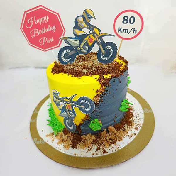 Rev up the excitement with our Motor Bike Theme Cake, a perfect treat for bike enthusiasts! Designed with a sleek motorbike topper and vibrant detailing, this cake brings the thrill of the open road to your celebrations. Whether it's a birthday, milestone, or special event, this delectable creation is crafted with rich flavors and premium ingredients to delight every guest. Customize it to your favorite colors or bike model for a truly personal touch. Celebrate in high gear with Just Bake!