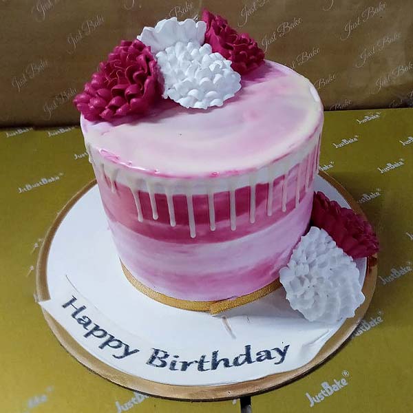 Introducing the Pink Floral Drip Cake by Just Bake, a dreamy confection perfect for any celebration. This elegant cake features soft pink buttercream adorned with delicate floral accents and a stunning drip effect, creating a visually captivating masterpiece. The rich, moist layers of cake are paired with a luscious filling that melts in your mouth. Ideal for birthdays, anniversaries, or special events, this cake brings a touch of sophistication and sweetness to every occasion. Make your celebrations memorable with this floral beauty!