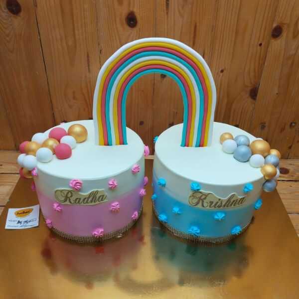 Celebrate divine love and vibrant joy with our Radha Krishna Rainbow Cake from Just Bake! 🌈💖 Adorned with colorful layers and artistic depictions of Radha and Krishna, this cake beautifully blends tradition with festivity. Perfect for Janmashtami, spiritual gatherings, or special celebrations, it’s a sweet tribute to eternal love and devotion. Each slice is a burst of flavor and color, spreading happiness and blessings with every bite. Make your celebration truly divine — only with Just Bake!