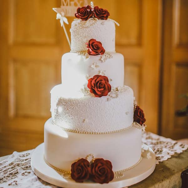 Celebrate your special day with the elegance of our Red Rose Wedding Cake from Just Bake. This stunning cake features layers of moist vanilla sponge, delicately frosted with creamy buttercream and adorned with exquisite handcrafted red rose decorations. Each bite offers a perfect blend of sweetness and sophistication, making it an ideal centerpiece for your wedding. Indulge in a touch of romance and create unforgettable memories with this beautifully designed cake.